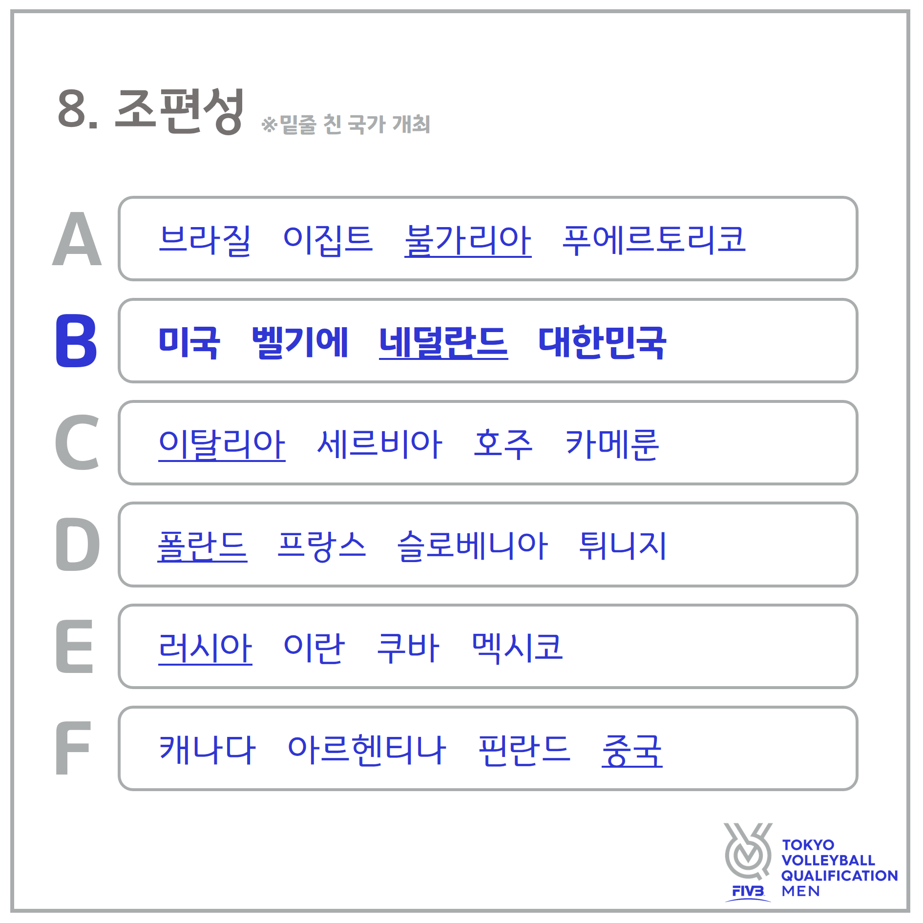 한국은 미국 벨기에 네덜란드와 한조에서 도쿄올림픽 티켓 획득을 노립니다.
