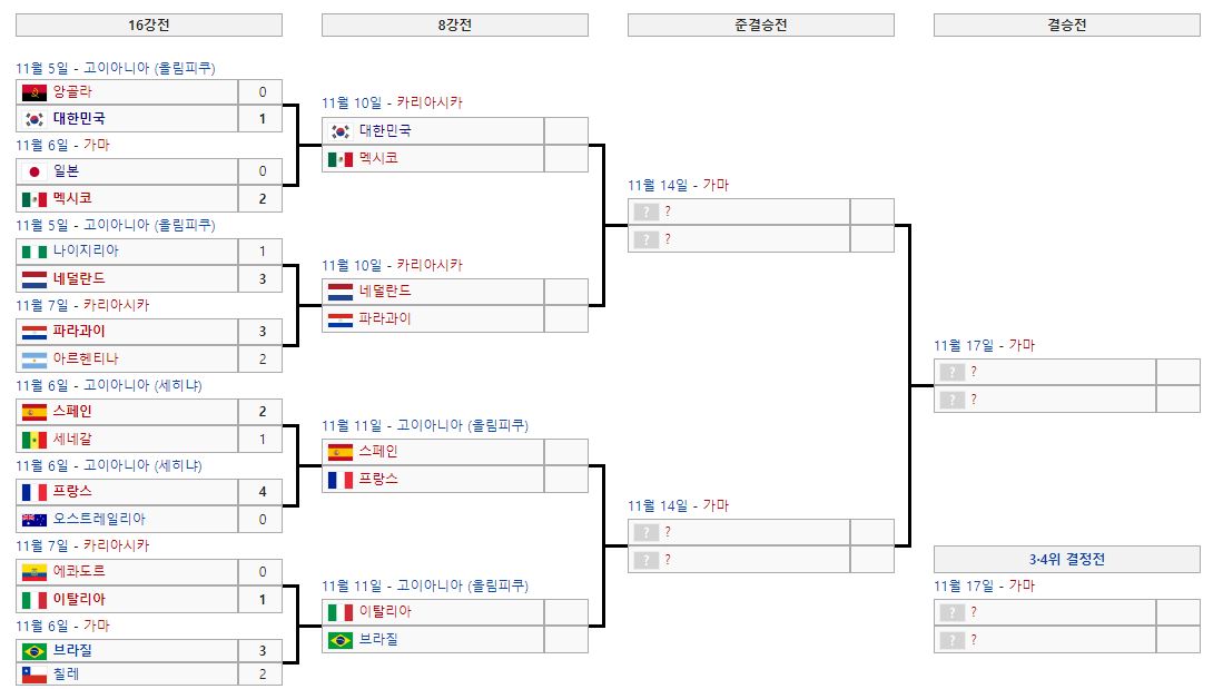 한국 멕시코 조별리그, 16강 결과