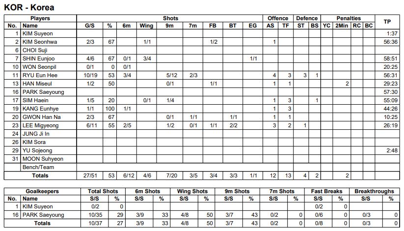 류은희 선수가 후반 맹활약하며 10득점으로 팀내 최다 득점을 했으나