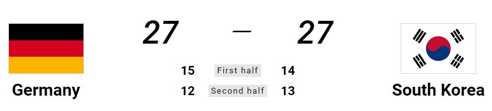 대한민국 : 덴마크 무, 독일 무 , 2무 승점 2점
