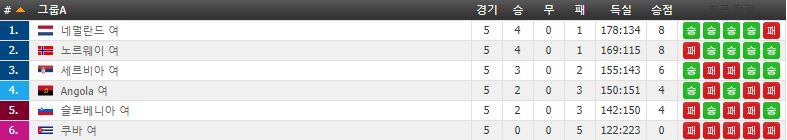 네덜란드 : 노르웨이 승, 세르비아 승, 2승 승점 4점