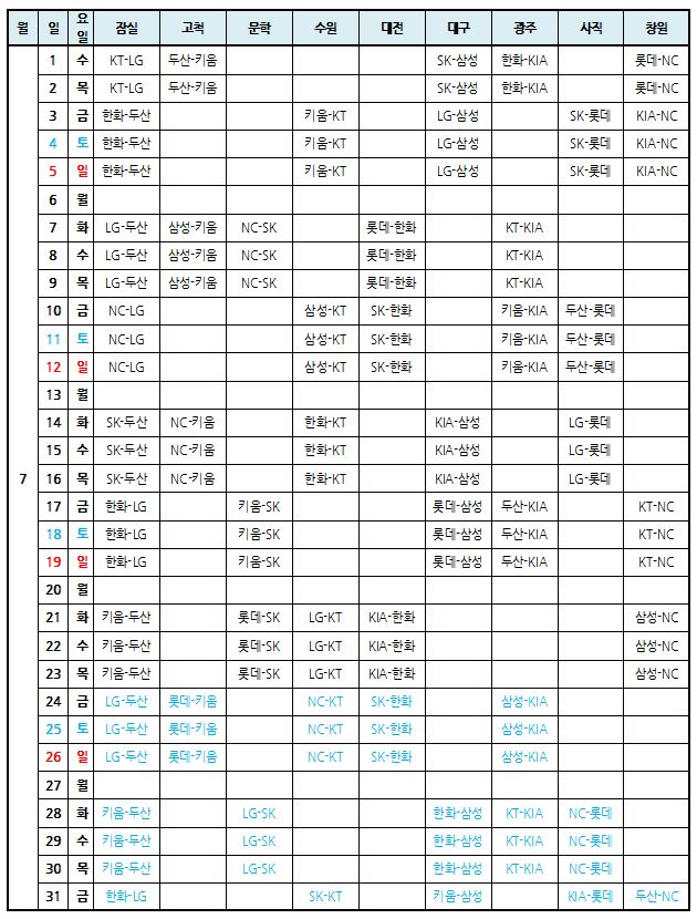 (기존 8월 19일 ~ 21일 3연전은 8월 20일 ~ 21일 2연전으로 변경)