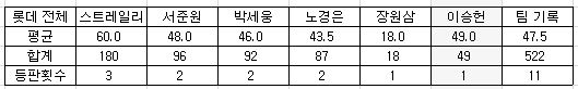 장원삼 카드는 실패했고. 서준원, 박세웅, 노경은은 나쁘지 않은 모습입니다.