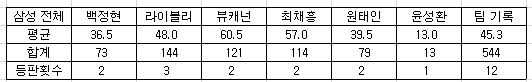 선수 이름의 연두색은 선발 투수 승리, 노란색은 선발투수 패배를 의미합니다.