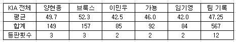 양현종을 살아나는 모습이고 브룩스가 세 번째 등판에서 부진했습니다.
