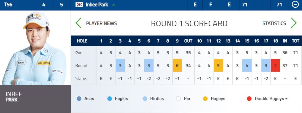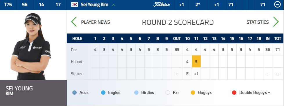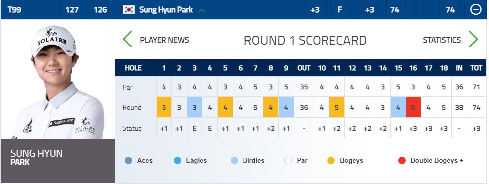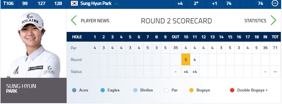 박성현 선수는 2라운드 첫 홀에서 보기로