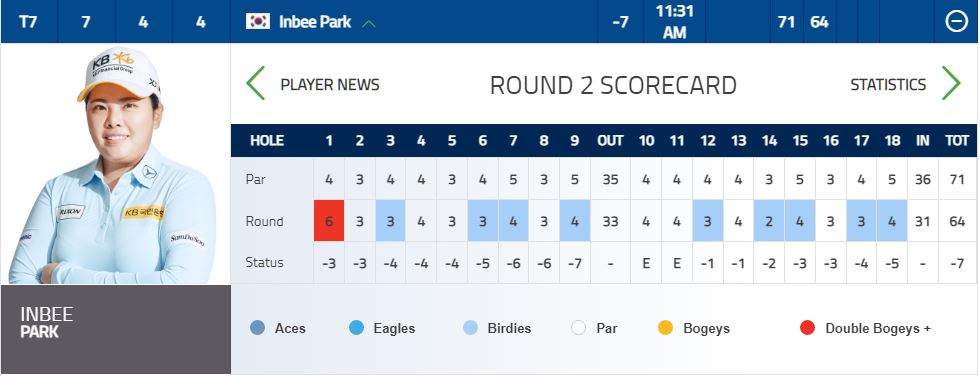 7타, 3타를 줄이면서 공동 7위에 랭크