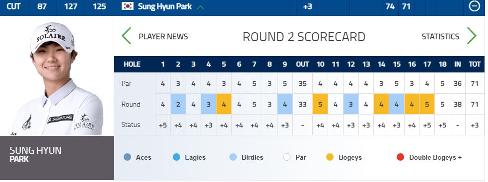 이틀 연속 더블 보기가 발목을 잡았습니다.