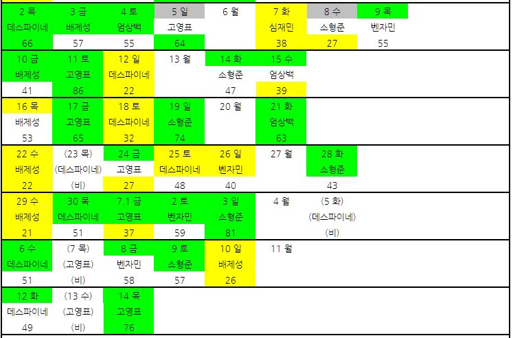 후반기 선발로테이션은 아래 링크를 참고하세요