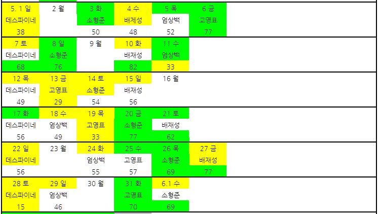 05.01- 06 데스파이네 소형준 배제성 엄상백 고영표