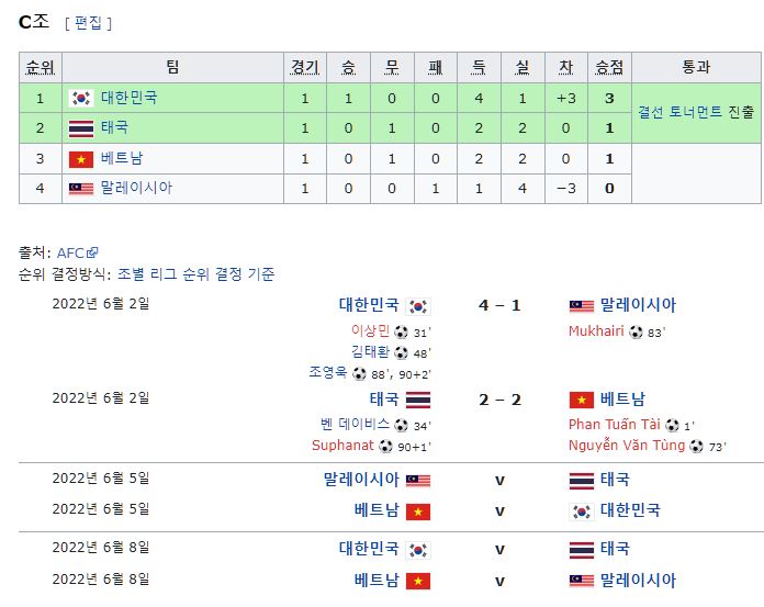 D조 1위 C조 2위