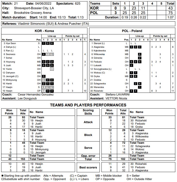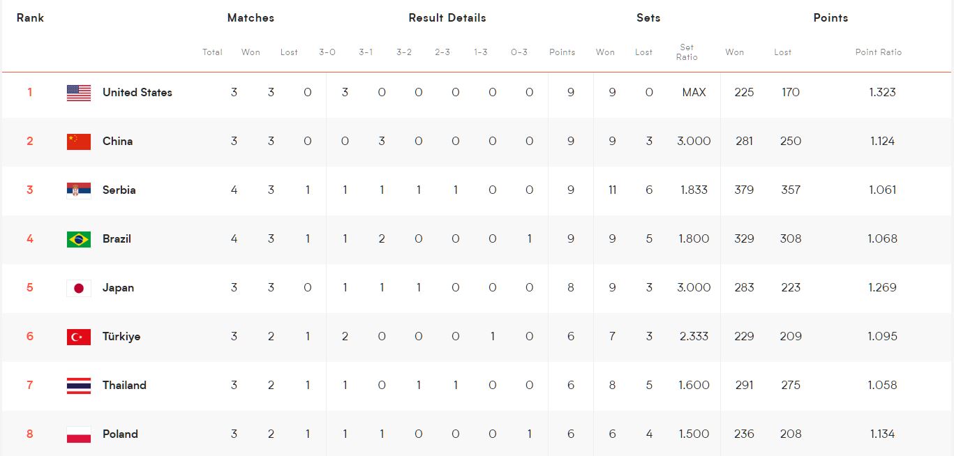 2022 FIVB 발리볼네이션스리그 순위