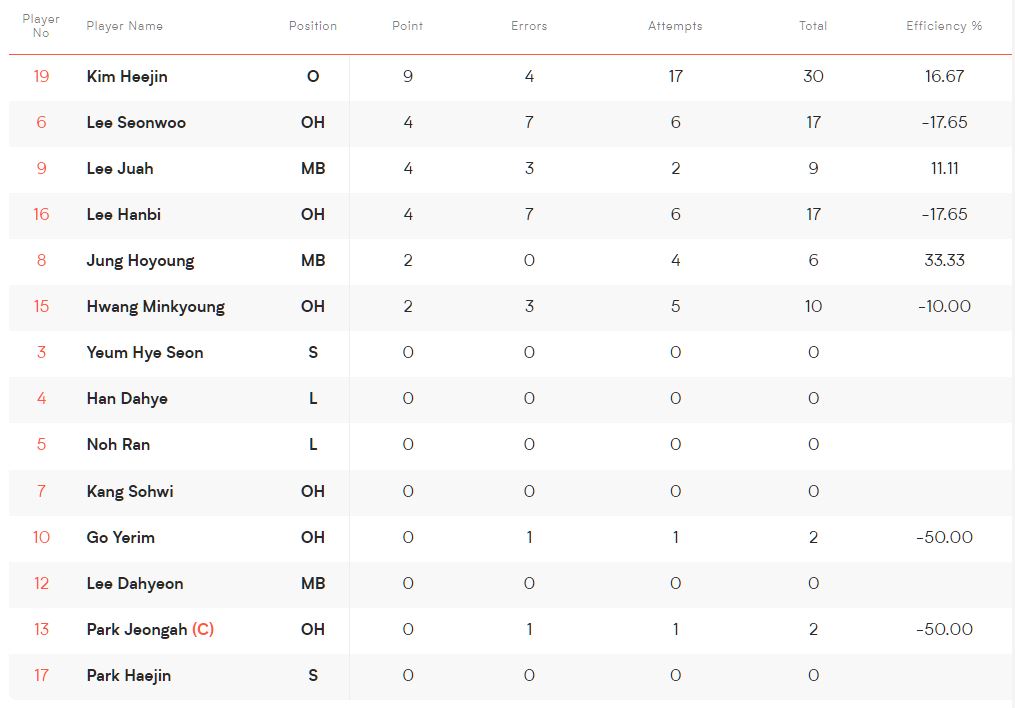 한국은 2세트에서만