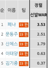 팀 선발 WAR