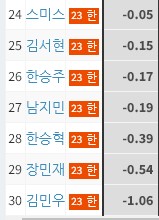 2022 김인환 활약으로 1.0을 넘겼지만 2023 망해버렸다.